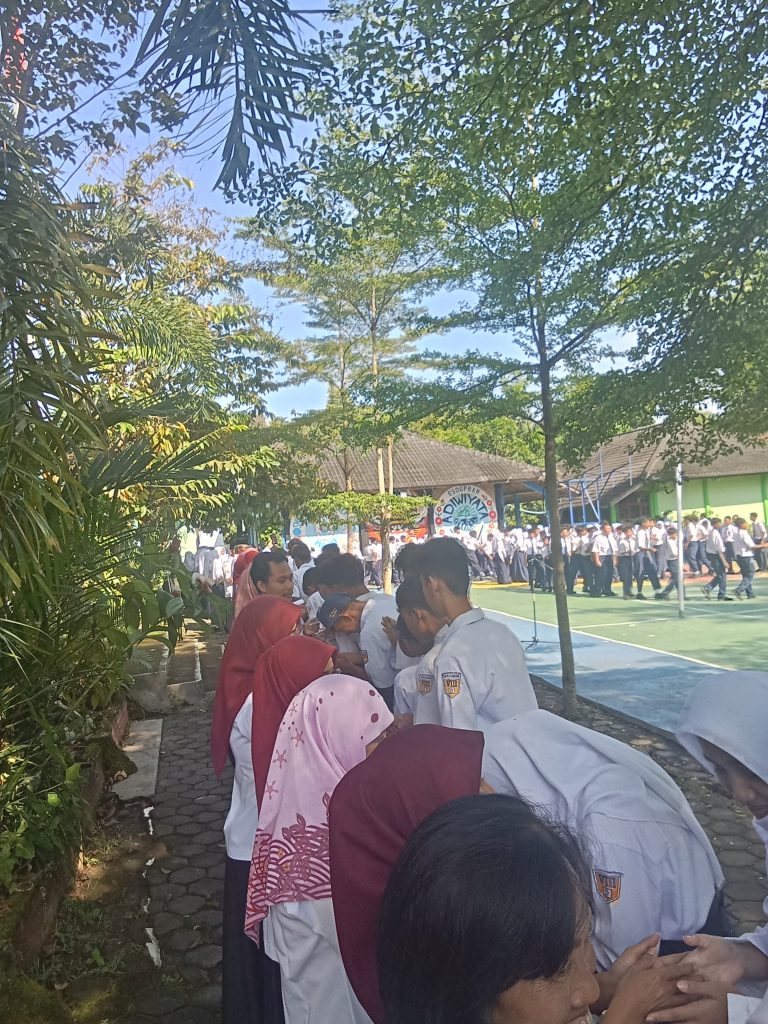 Lapangan utama sekolah yang biasanya dipenuhi barisan rapi saat upacara, hari itu berubah menjadi saksi bisu momen keakraban yang menghangatkan. Sesuai jadwal, seluruh siswa, guru, dan staf karyawan berkumpul untuk melaksanakan tradisi saling memaafkan.